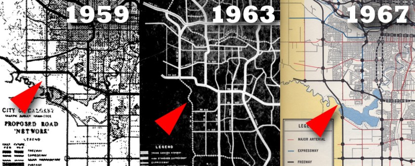 In 1959, Calgary produced it’s first ever transportation plan, called the Calgary Metropolitan Area Transportation Study. This was the first time the City produced a comprehensive, forward-looking plan that laid out the basic road network for a growing city.