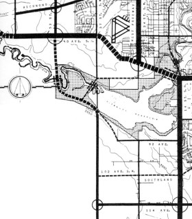 In 1980 (above), after the Calgary city council voted to purchase the 37th street SW right-of-way south of the river on condition that the Sarcee Trail extension not cut through the Weaselhead, the Ward 13 Alderman Jim Bell proposed that 37th street SW be utilise as a smaller connector road rather than a freeway. This was promptly voted down, however 30 years later, Ward 13 Alderman Diane Colley-Urquhart would propose essentially the same idea.
