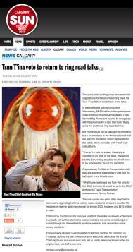 Under the prevailing opposition to the Plan B routes, most notably by Mayor Naheed Nenshi, Premier Alison Redford and Ward 11 Councillor Brian Pincott, among many others, the Tsuu T’ina took a poll of their members. On June 29 2011, the Nation voted 68.5% in favour of re-entering negotiations with the Province for a road route through their land. (Of course, the Tsuu T’ina have stated since June 2009 that they were open to further negotiations; it was the Province that decided against further talks with the Nation. Given the speed at which the Province accepted new negotiations, one can’t help but wonder about the politics involved. Whether the Province felt that it could not be perceived as ‘giving in’ by proposing new talks, thereby needing to wait for the Tsuu T’ina to restate their longstanding position in a new way, and thus allowing the Nation to ‘make the first move’).