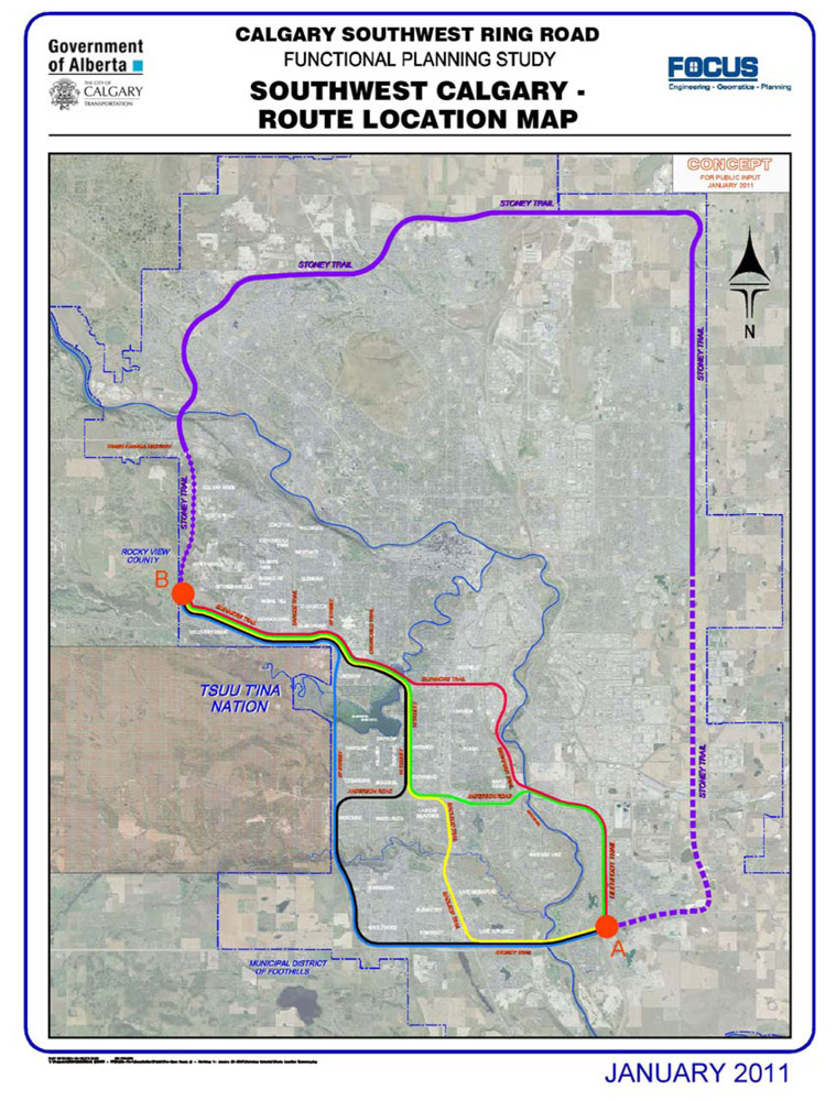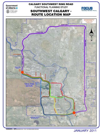 On November 27 2009, following the Tsuu T’ina’s rejection of the 2009 ring road agreement, the City and the Province signed a memorandum of understanding to study a Plan B; to plan a ring road along 37th street from Highway 22x to Glenmore Trail. The scope of the proposed study was eventually widened to look at several potential corridors, not just 37th street SW.