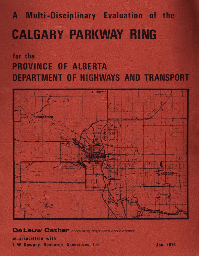 1974 saw the completion of the first comprehensive report on the Calgary Ring Road, known at this time as the Calgary Parkway Ring, which was produced by the firm of Deleuw Cather Consulting Engineers and Planners, on behalf of the Provincial government. This report not only laid out the route and general design of the road, but it also explored the need for the road itself, and the concept of the road as part of a larger system, integrated with other amenities such as public transportation and parks.