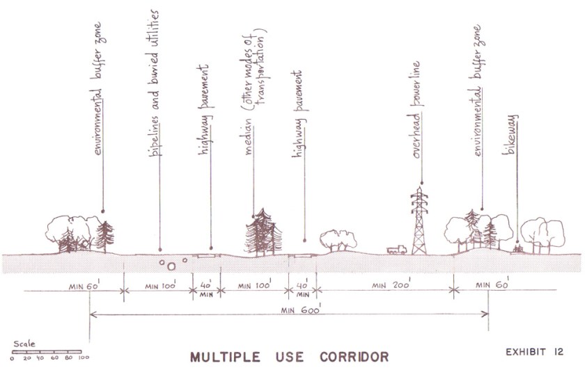 Rather than being secondary to the ring road concept, the multiple-uses of the corridor were seen as instrumental in the success of the plan. “The multiple-use of the corridor should be seriously considered… The potential success which can be derived depends largely on the degree and means of implementation of the multiple-use considerations and the integration of this corridor with adjacent land uses.”