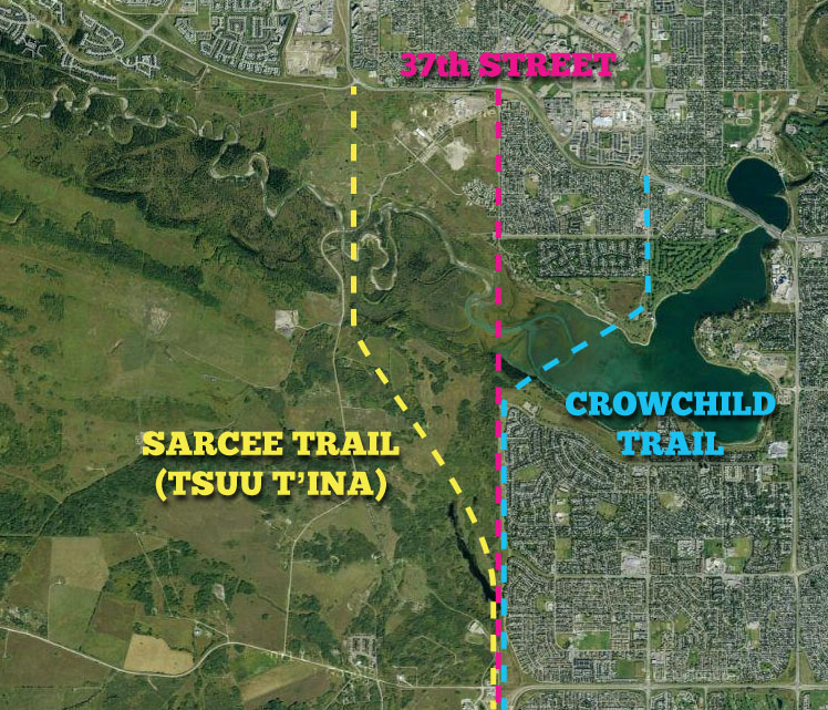 •Sarcee Trail via the Tsuu T’ina reserve by high-level or low-level bridge