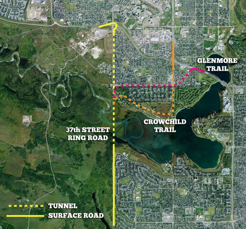 For an idea that has been around for almost 40 years, it has never been far from the minds of people looking for ways to accomodate a road in the southwest of Calgary, while attempting to mitigate the effects on the communities and parks in the area. How realistic it is, however, is subject to debate. What’s clear is that as long as a Tsuu T’ina alignment is still under negotiation, a tunnel will not be a part of the discussion.