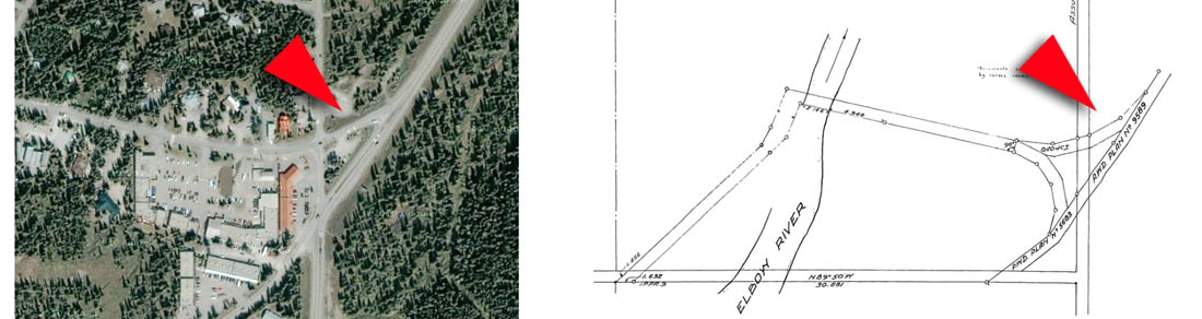 Record floods in the summer of 1932 washed away the bridge over the Elbow river in Bragg Creek, the third bridge to be washed out in that spot since 1913. A new bridge was to be constructed downstream from the original location, in the place where the current bridge still stands, and the newly relocated bridge required a small portion of land from the Tsuu T’ina reserve to accomodate the approach road. This approach ‘diversion’ will be familiar to those that have traveled through Bragg Creek, as it forms the junction of Balsam Avenue and Highway 22, and has resulted in a small isolated triangle of the Tsuu T’ina reserve across from the Shell station.