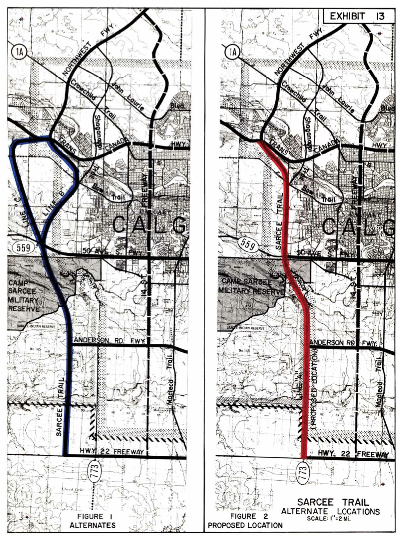 In 1970 the Provincial Government produced a study of all Calgary-area major roads, called the Calgary Area Study, and included in this assessment of future road needs was the Southwest Ring Road, also known as the Sarcee Trail Extension.