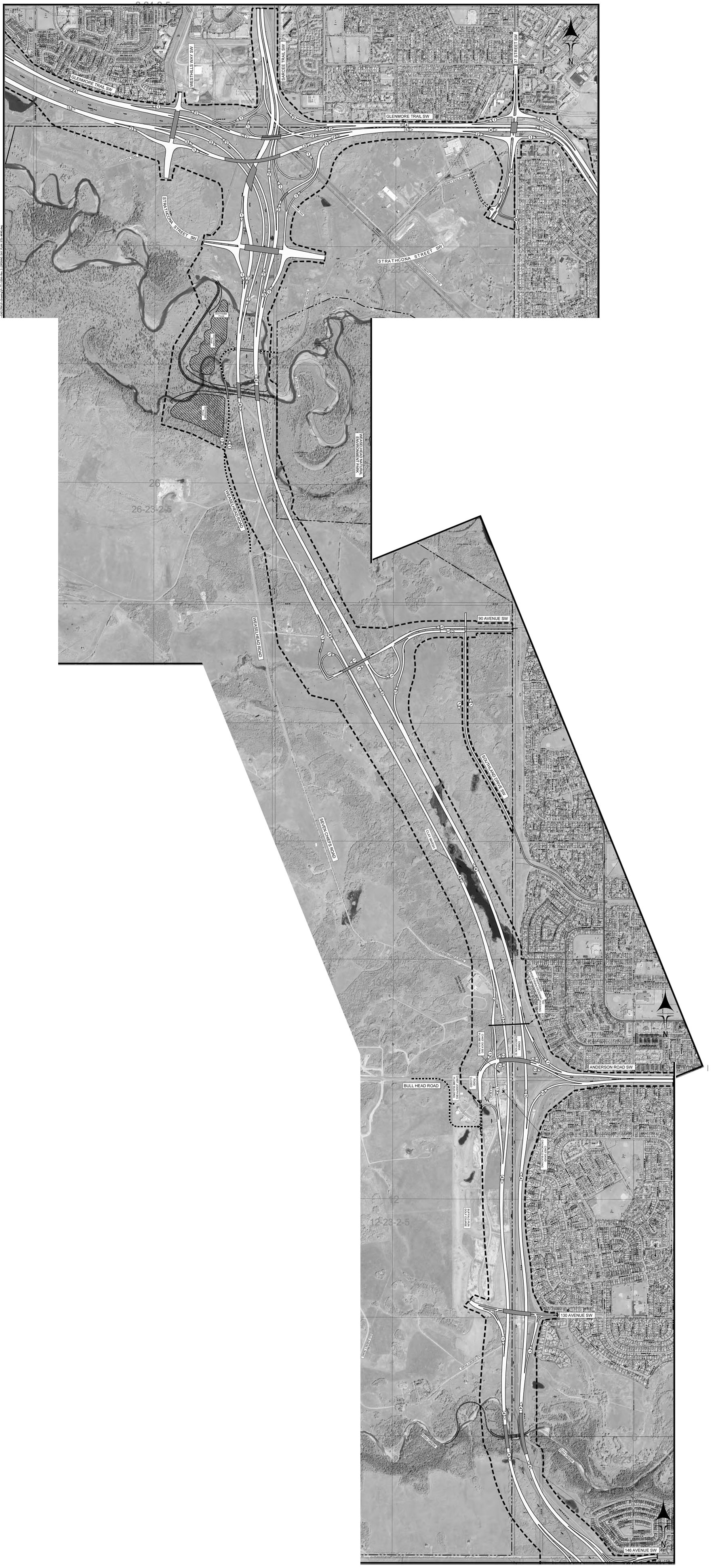 • Interchanges at: 130th avenue SW, Anderson road, 90th avenue SW, Sarcee/Glenmore trails, Strathcona street, Westhills way and the Glenmore trail/37th street SW interchange.