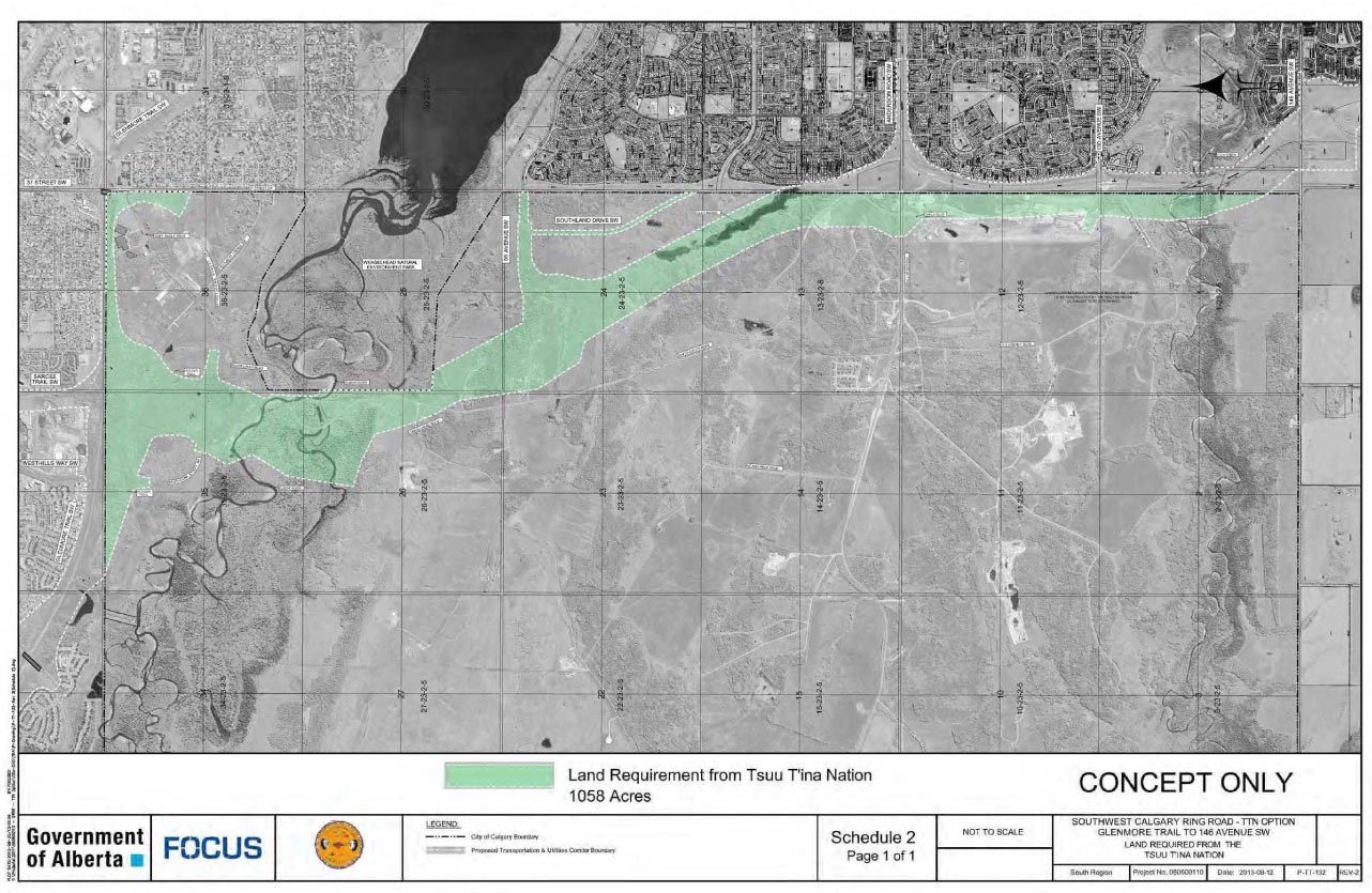 UPDATE JULY 2015: The Federal Government approved the addition to the Tsuut’ina reserve and the transfer of the road corridor to the Province in May 2015. Click here for all of the details.