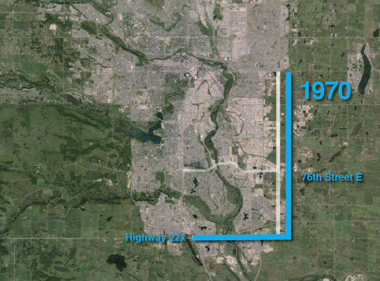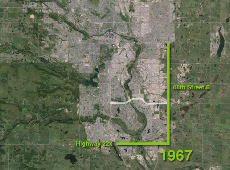 Over the next decade an a half, the route for the eastern and southern bypass roads would undergo many modifications. A series of plans and studies looking at Calgary’s road network provided an evolving and expanding plan for many of the city’s major roads, and included routes that would eventually lead to what would become the southeast ring road.