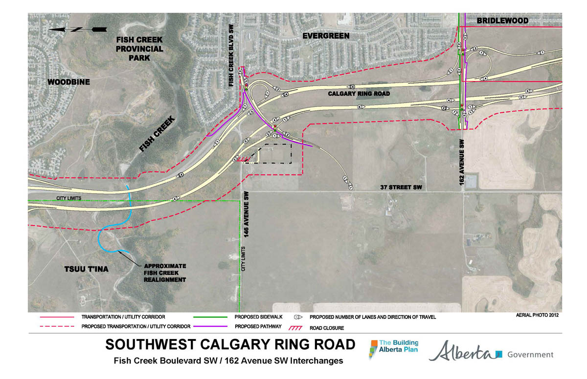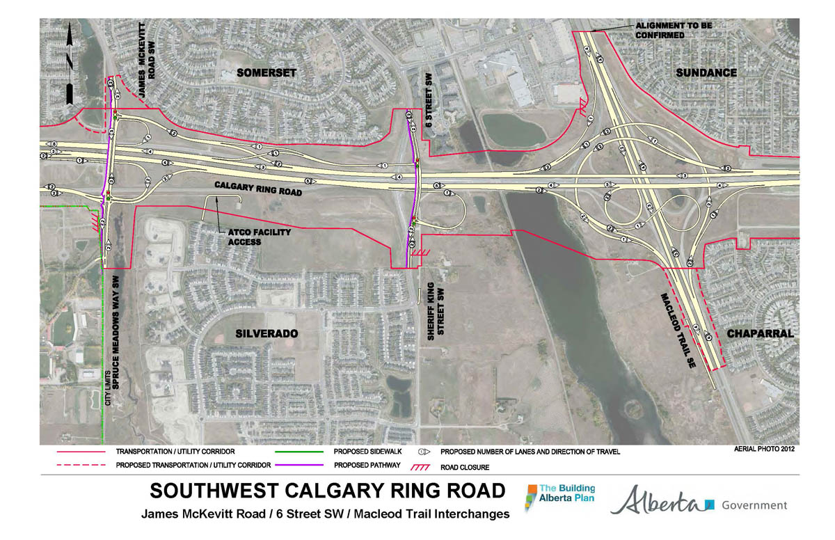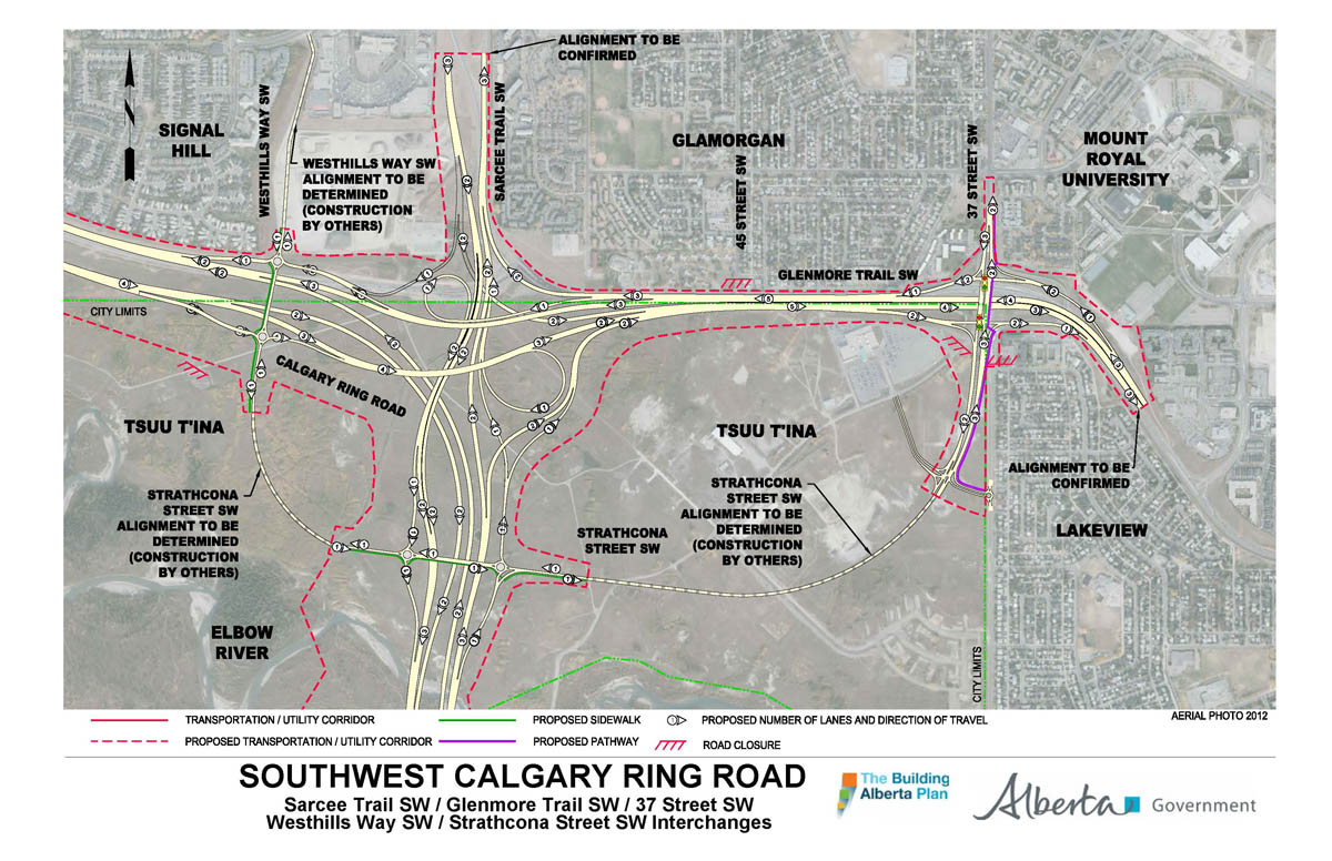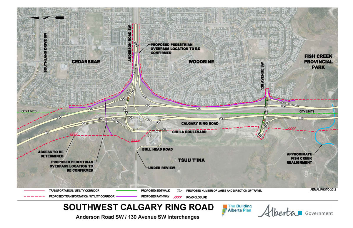 Though the new release contains little new information on the physical road itself, one of the major changes announced involves the staging of construction. While the Province and the Tsuut’ina Nation are still awaiting the Federal Government to approve the land transfer that was agreed upon last year, the Province has stated that rather than build the West leg first, as was previously announced, the Southwest leg of the road would be the first to start construction. The timelines are currently unchanged from earlier estimates, and it is hoped by the Province to have a contractor awarded and construction begun in 2016.