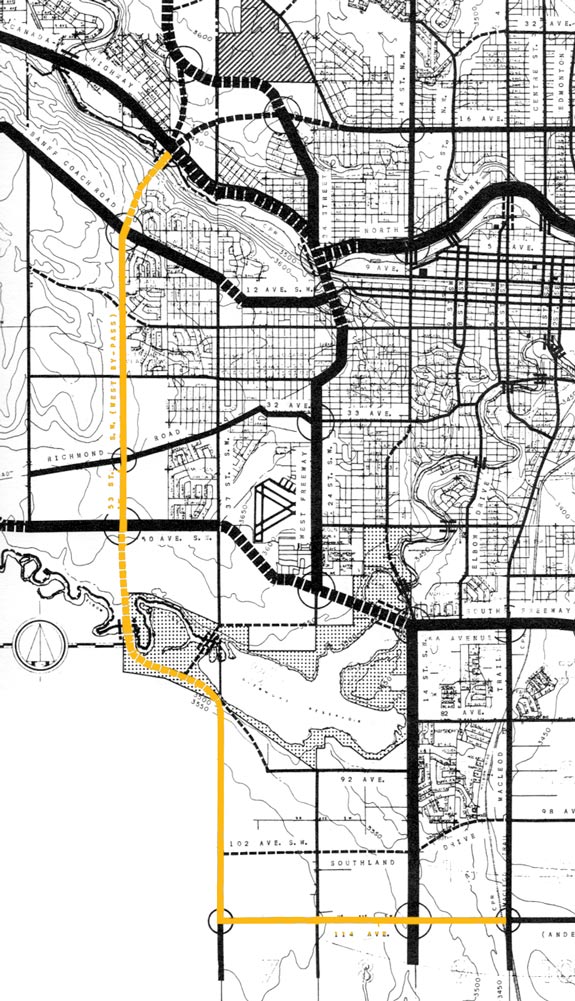 Though this alignment would later form a key link in a larger Provincial bypass (and part of the proposed route of the Southwest Ring Road for many years), the Minister had spoken and the message was clear: a bypass route on Calgary’s west side was not part of the Province’s plans at that time.